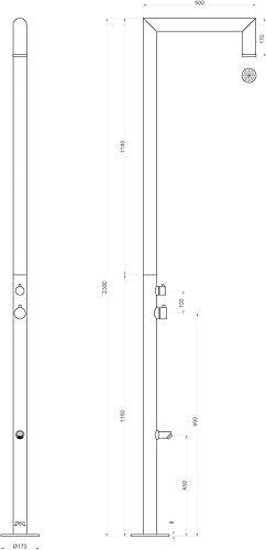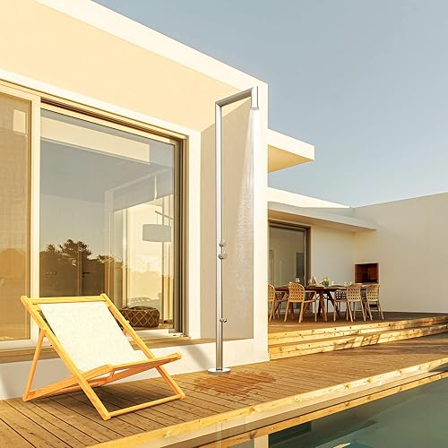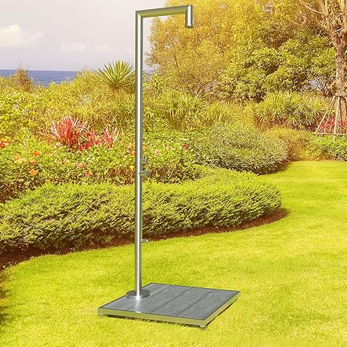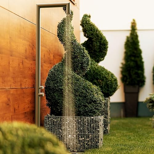 Four & More Design Doccia da Giardino per Esterni, per Piscina, Doccia a Pioggia, Colonna Doccia in Acciaio Inox V4A/316 Spazzolato, Modello Maui con Attacco per Acqua Calda e Fredda per Il Giardino