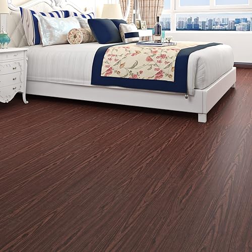 Livelynine Pavimento PVC Adesivo Effetto Legno Parquet Adesivo Pavimento 16 Piastrelle Adesive Cucina Legno Rosse 90x15cm Rivestimento Parete Adesivo Legno Lavabile Carta da Parati Adesiva Muro Bagno