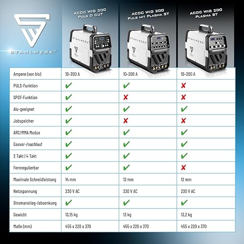 Completamente equipaggiata STAHLWERK AC/DC TIG 200 Plasma ST IGBT Combi 200 Amp TIG MMA e saldatrice 50 A CUT Tagliatrice al plasma, idonea ALU, 7 anni di garanzia