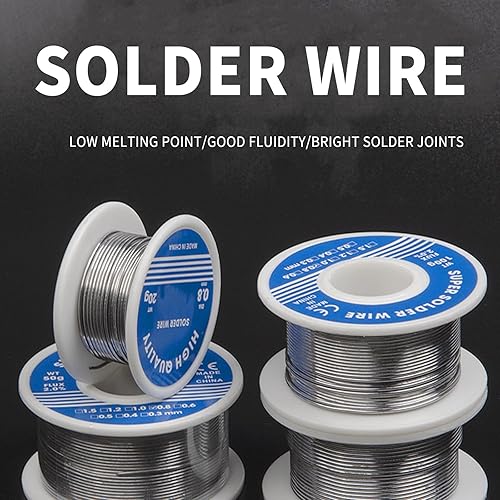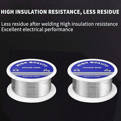 2 fili per saldatura, filo per saldatura con flusso, filo per saldatura, 0,8 mm, contenuto di stagno 63%, filo di saldatura con nucleo in colofonia, per riparazione di componenti elettrici elettronici