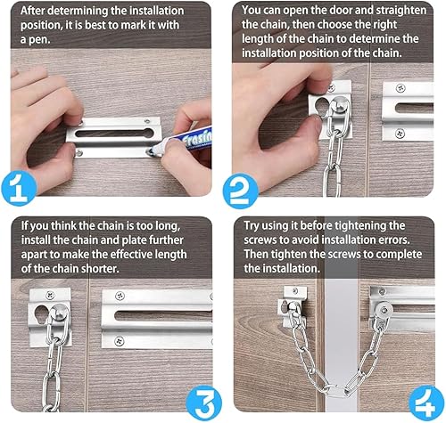 Catene di sicurezza per porte, Catena per porta in acciaio inossidabile da 1 pezzo con catena di protezione antifurto per catena di sicurezza per porta anteriore a 6 viti