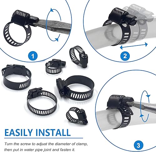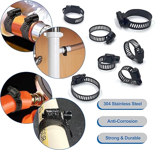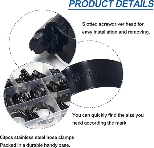 60 fascette stringitubo in acciaio inox, assortite, 7 gamma regolabile, 6-38 mm, per idraulici, automobilistici e meccanici, colore nero