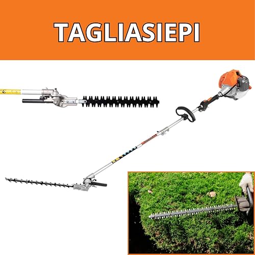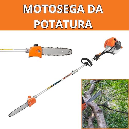 Decespugliatore a Scoppio Multifunzione 4 in 1 per il Giardinaggio, Tagliaerba, Motosega, Tagliasiepi e Tagliabordi, Motore 2 Tempi da 52cc - DE ROSA SHOP