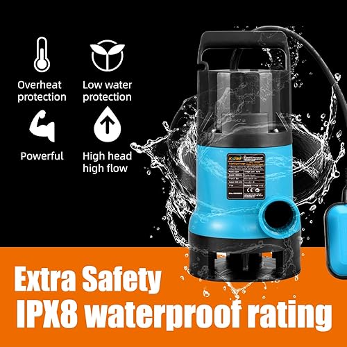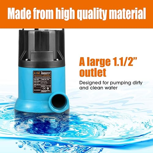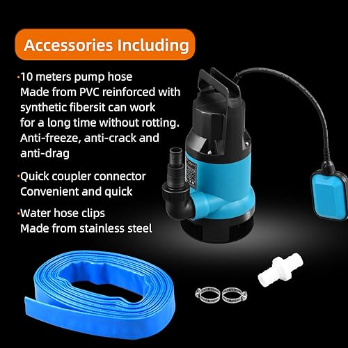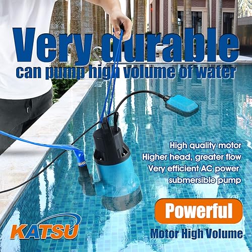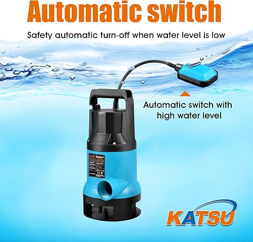 Katsu Pompa sommergibile portatile da 400 W per acqua pulita e sporca per laghetti da giardino, piscine e fossati + interruttore galleggiante