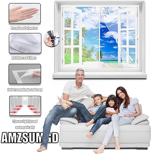 Zanzariera Magnetica per Finestre 80 x 130 cm Rete Zanzariera Porta Finestra Magnetica Anti-Zanzare per Porte Scorrevoli, Garage(Bianco)
