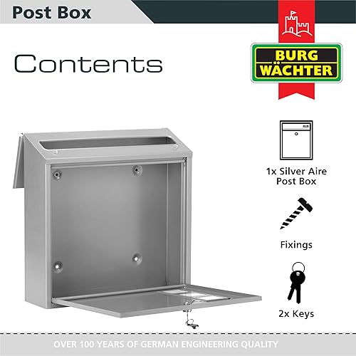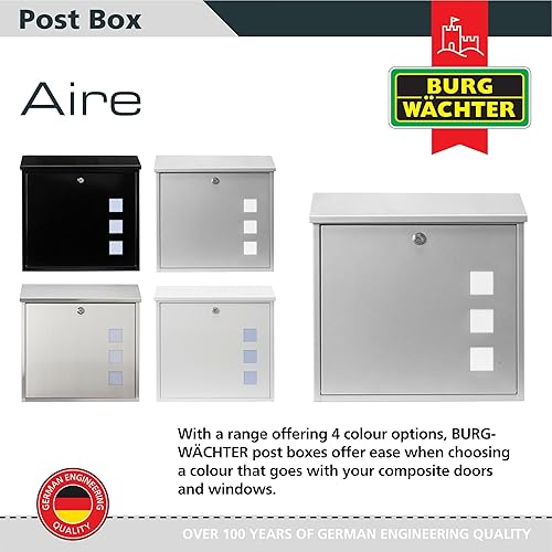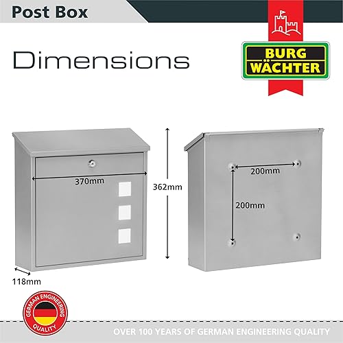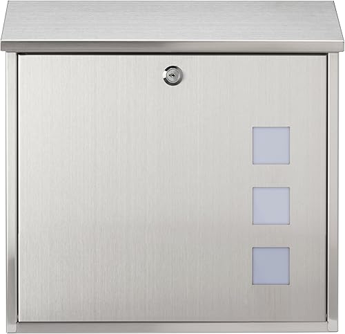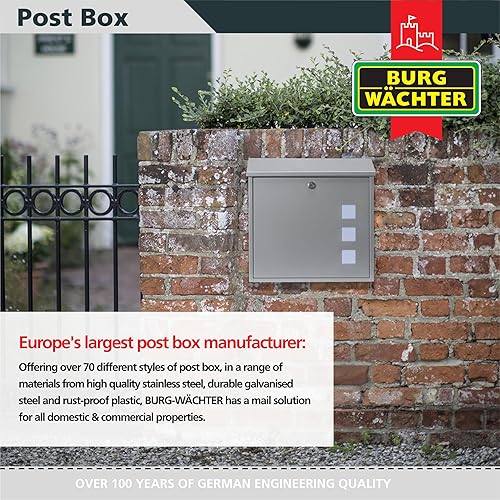 Burg-Wachter MB08ST Aire - Cassetta postale a parete in acciaio inox con serratura resistente alle intemperie, 37 x 36 x 11 cm
