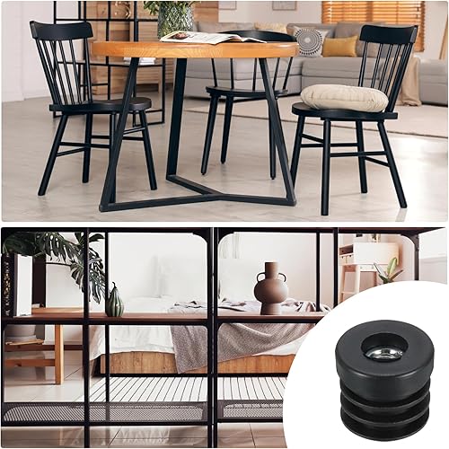 6pz Inserti per Tubi Tondi con Filettatura M8, per Tubi Rotondi 25mm/0,98' OD Tappi Gambe Mobili con Tappi Rotelle Plastica Spessa Nera Rotonda