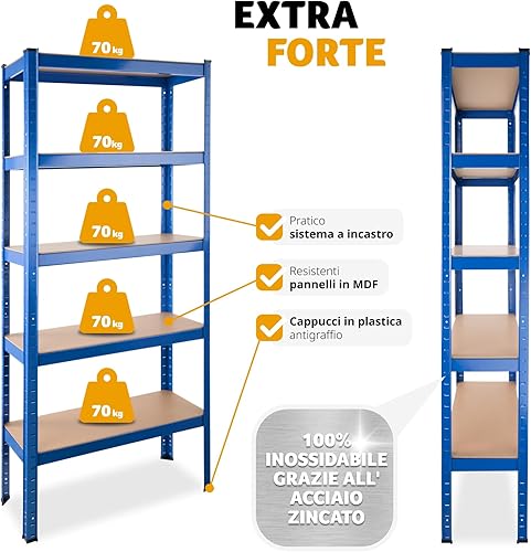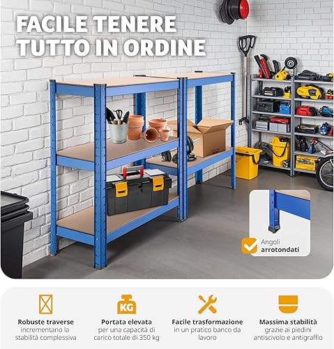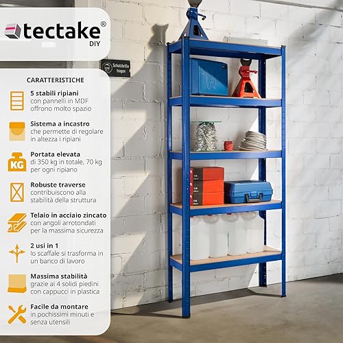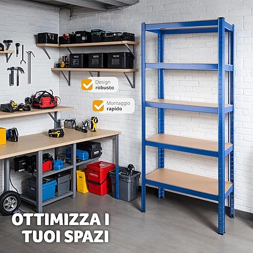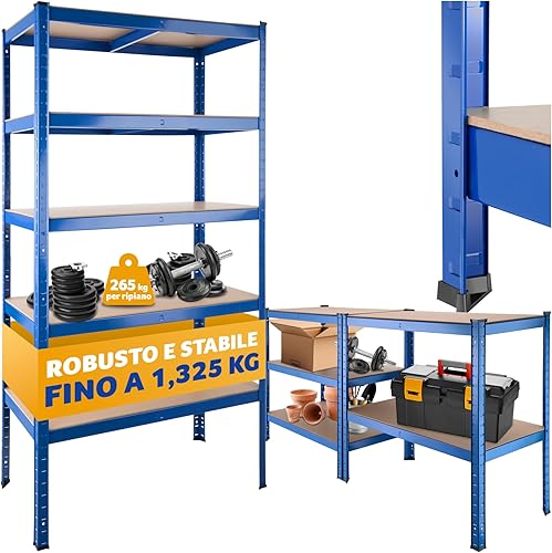 Scaffale in Metallo a 5 Ripiani, Scaffale Salvaspazio, Scaffale Metallo Garage Regolabile, Trasformabile, Ideale per Magazzino, Ripostiglio, Ufficio, Capacità di Carico 350 kg - Blu