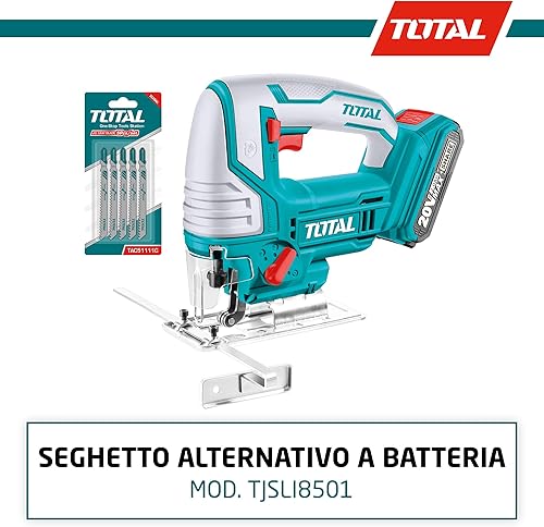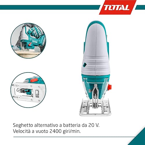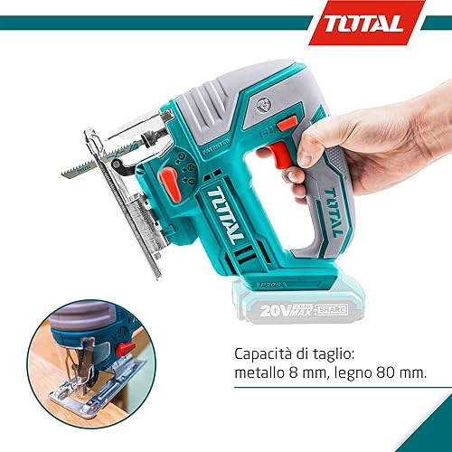 TOTAL - Seghetti Alternativi 20V | Velocità 2400rpm | Taglio Metallo/Legno 8mm | 5 Lame Incluse | Amig Cesoia Potatura | Ruote per Trabattello con Freno | Senza Batterie e Caricatore