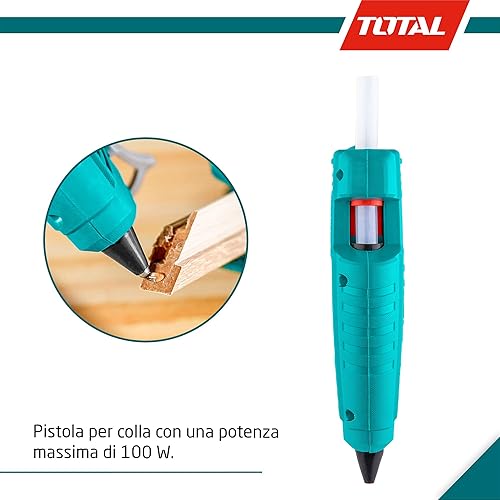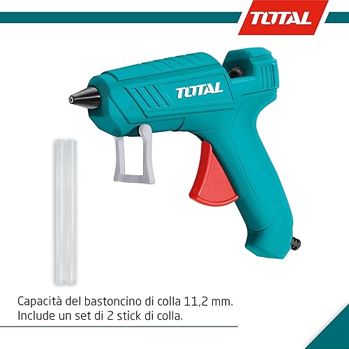 TOTAL - Pistola per colla a cavo con potenza da 100 W | Riscaldamento rapido | Diametro 11,2 mm | Ideale per falegnameria e artigianato | Include 2 bastoncini di colla
