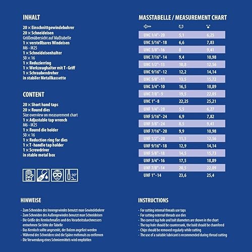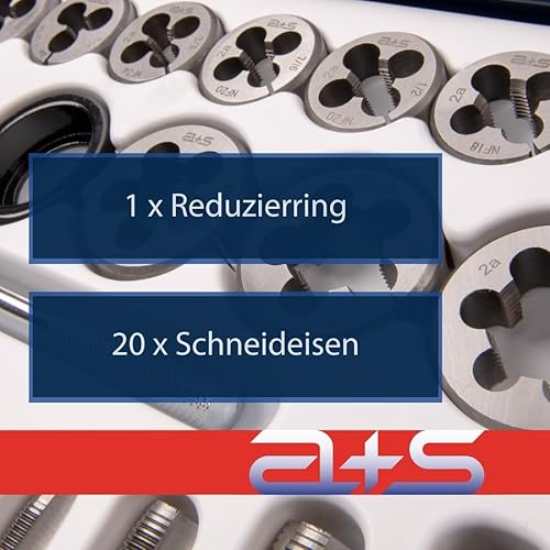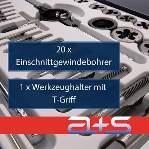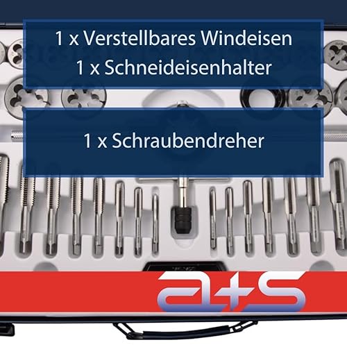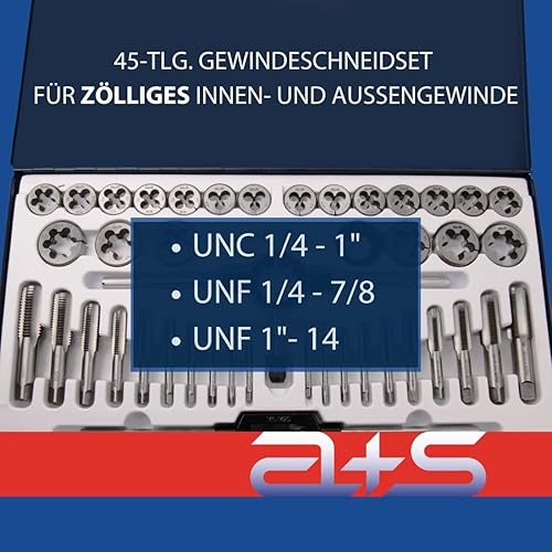 a+s Albrecht und Schulte - Set di 45 pezzi per filettatura a mano, UNC/UNF, set di maschi a mano, filtro, per verricello, supporto per attrezzi e filiere, cacciaviti, set di taglierina fine