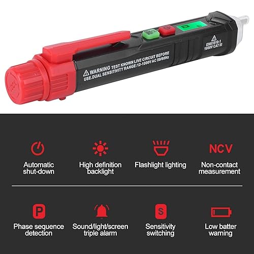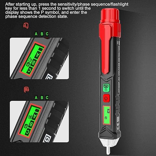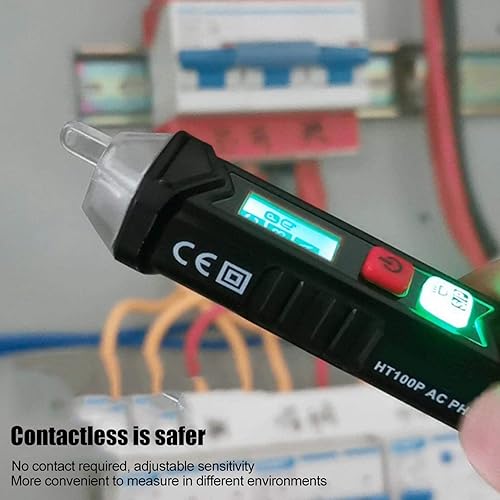 Tester di Tensione Senza HT100P Dual Range 12V-1000V/48V-1000V Penna Rilevatore di Tensione CA Indicatore di Rotazione a 3 Fasi Tester Penna con Torcia a Led Allarme Cicalino