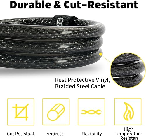 Cavo Antifurto per Biciclette, Cavo di Sicurezza per Monopattino, Cavo Acciaio Doppio Anello per Lucchetti Lucchetto a U o Disco