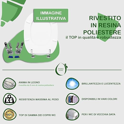 Tavoletta Wc Compatibile con PIEMONTE e PIEMONTESINA POZZI GINORI, Copriwater In Legno Rivestito Con 2 mm Di Resina, Cerniere Fissaggio Dal Basso MADE IN ITALY (WHISKY)