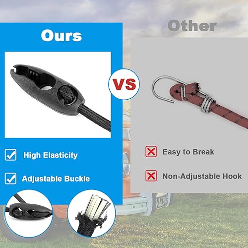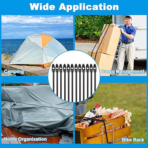 12Pezzi Corde Elastiche Resistenti alle Intemperie, 50cm Corda di Gomma Bagagli Multiuso, Elastici Portapacchi Regolabili con Fibbia Borsa con Coulisse per Roulotte Campeggio