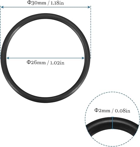 30mm x 26mm x 2mm Nitrile Gomma O-Ring x 10pz Rotondo Guarnizione Rondella per Rubinetto Idraulica Riparazione Sigillatura Connessione [Nero]