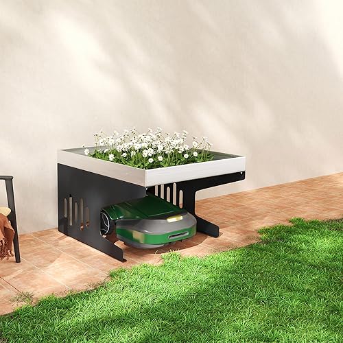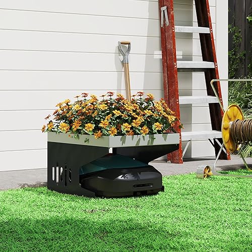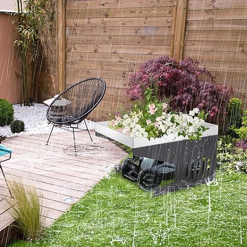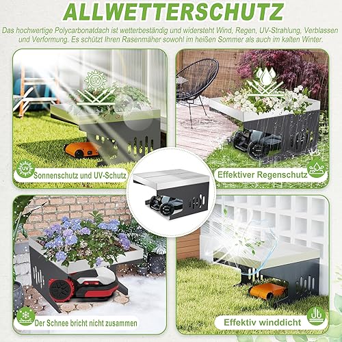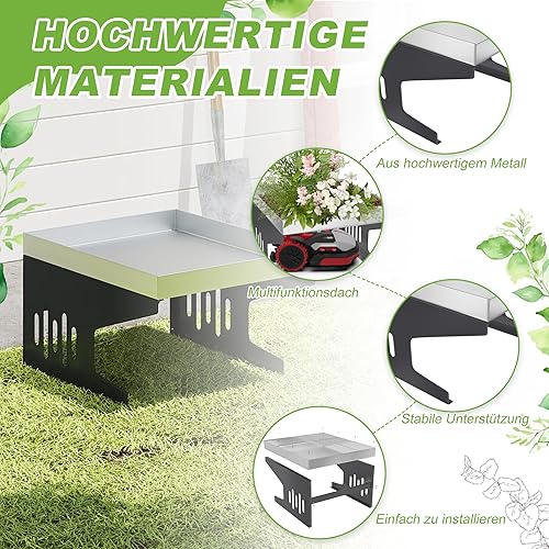 Copertura protettiva per robot tosaerba, per robot tosaerba, con tettoia, protezione UV, per tosaerba, 70 x 60 x 43 cm, in metallo (tetto in acciaio inox)
