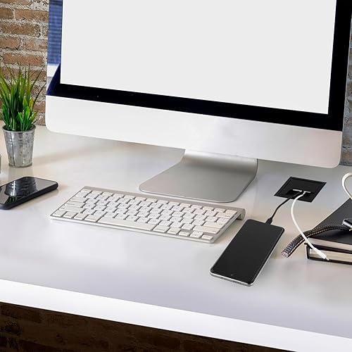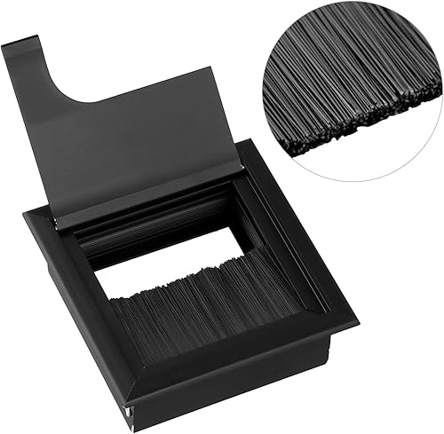 Set da 4 Passacavo Scrivania Quadrato 80x80mm in Alluminio Nero Anodizzato per Tavolo Ufficio e Mobili Casa