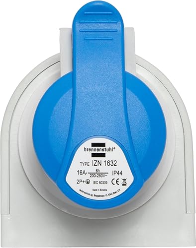 Brennenstuhl Presa Elettrica Industriale a Muro CEE a 3 Poli, Presa Industriale 230V/16A con Coperchio per Uso Esterno, Ideale per Utilizzo all’Aperto, Cantieri, Industria, IP44, 16A
