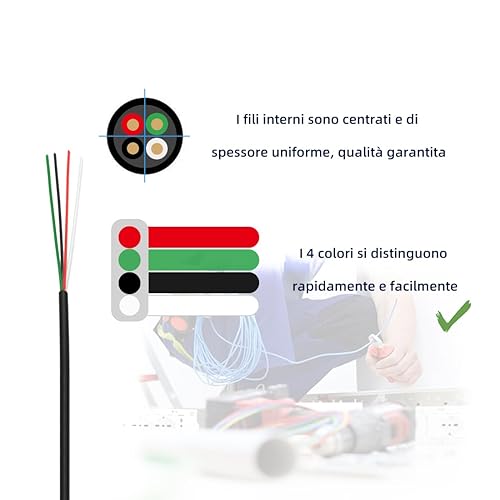 4x0,32mm2 Cavo Elettrico, Cavo Flessibile in PVC Nero Cavo a 4 Conduttori - Lunghezza Opzionale 5m 10m 20m, Cavo di Prolunga per Strisce LED (20 Metri)