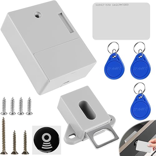Serratura elettronica per armadio, serratura RFID con batteria, serratura intelligente con 2 portachiavi e 2 schede RFID, cassetto e armadio in legno, serrature nascoste per armadio a doppia porta