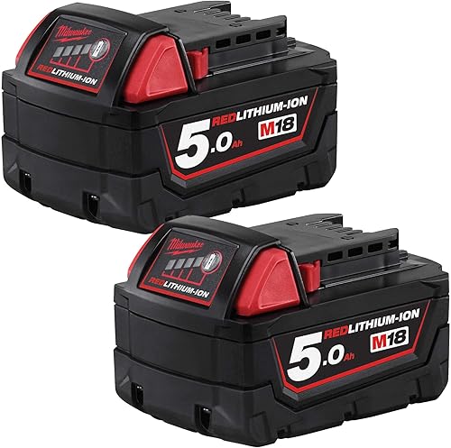 Milwaukee Batteria M18B5 18V 5Ah, 2 pezzi, 18 V, rosso