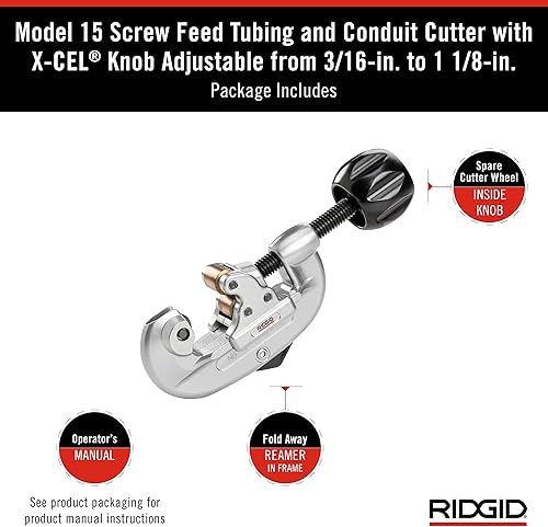 RIDGID 32920 Modello 15 Tagliatubi con Avanzamento a Vite, Capacità 5-28 mm