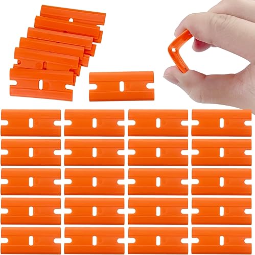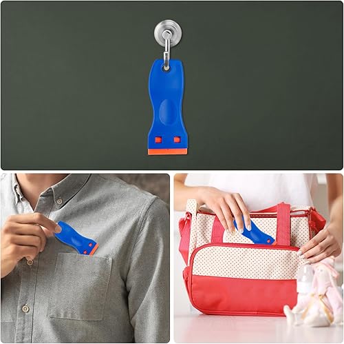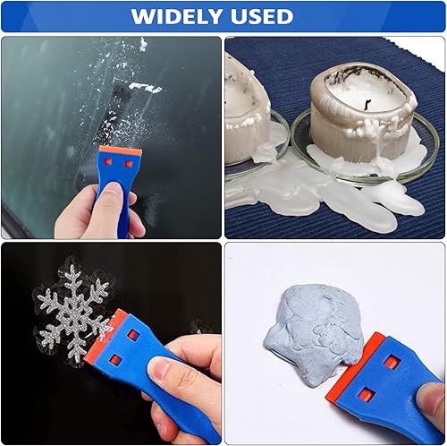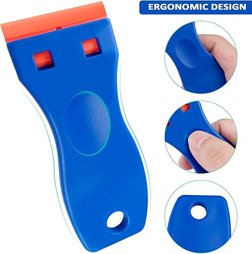 Raschietto Vetro, 2 pezzi Raschietto Plastica con 100 Lame in Plastica, Vetroceramica Professionale Spatola Vetro Lame per Colla, Colore, Decalcomanie, Piano Cottura e Forno, Blu