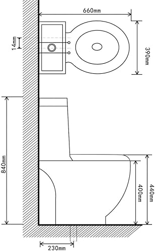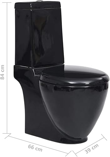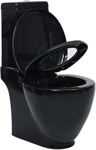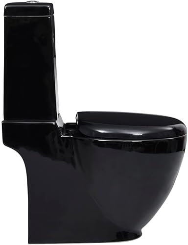 vidaXL Vaso WC in Ceramica da Bagno Rotondo Base con Scarico Nero