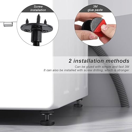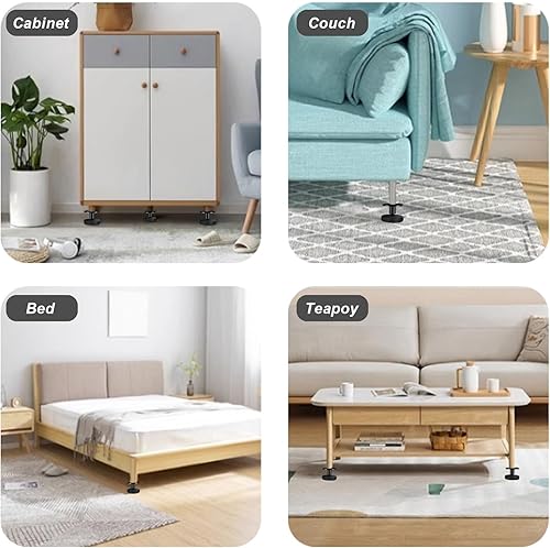 4 piedini regolabili per mobili da 47 a 64 mm, allungabili con dadi di collegamento, forati o autoadesivi, silenziosi e delicati sul pavimento, per mobili o dispositivi mobili