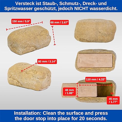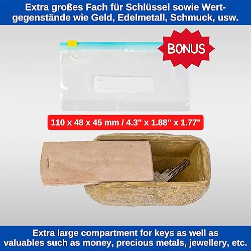 Nascondiglio per chiavi da esterno, scomparto extra large 110 x 48 x 45 mm, nascondiglio segreto per chiavi di riserva, geocaching, decorazione da giardino in finta pietra, deposito per chiavi