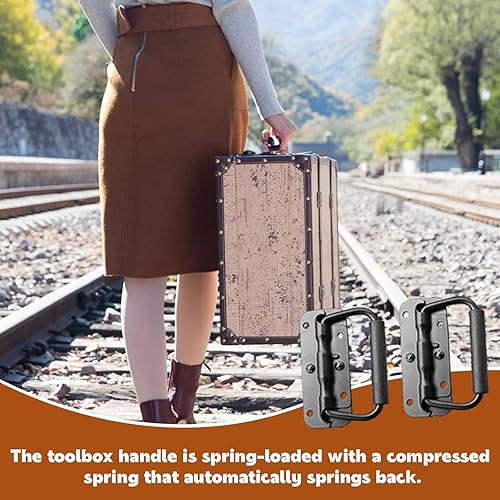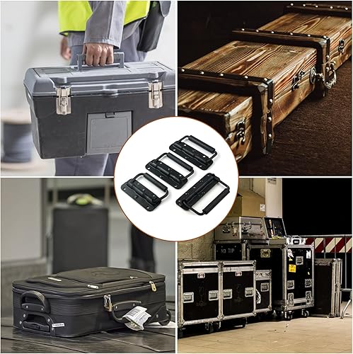 Pizsieat 4 Pezzi Maniglia Pieghevoli 100 mm Maniglia a Molla in Acciaio Inox Cassetta Degli Attrezzi Maniglie Maniglia Pieghevole a Molla per Scatola Degli Attrezzi Scatole di Ricambio (Nero)