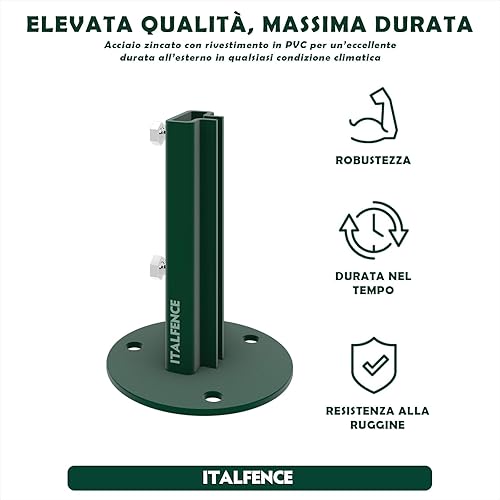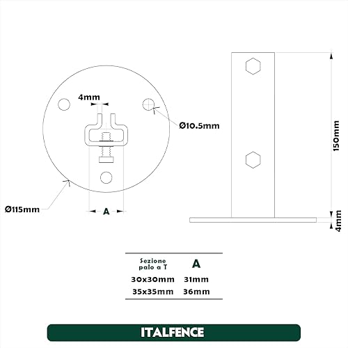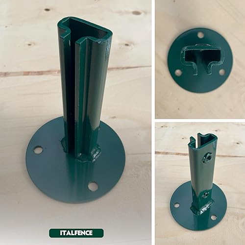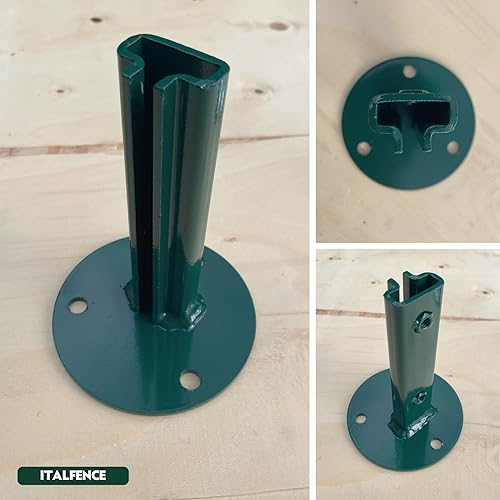 Supporto per palo a T 30x30mm con piastra circolare in ferro plastificato da tassellare, 5 pezzi