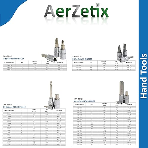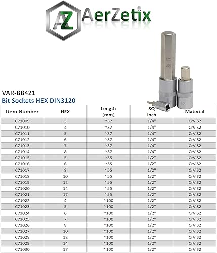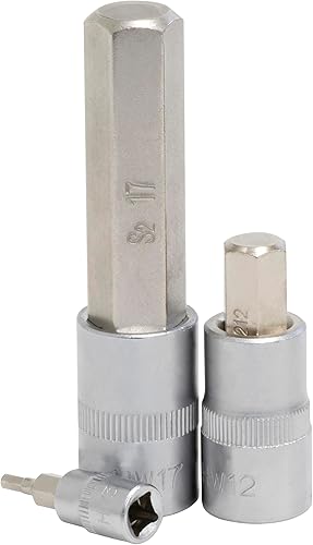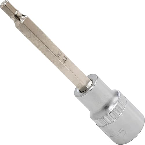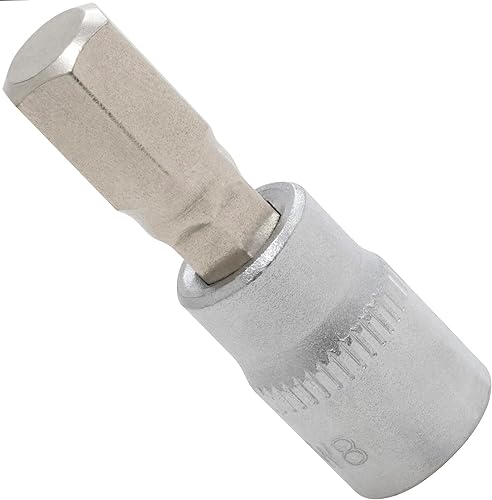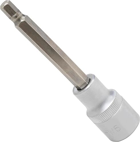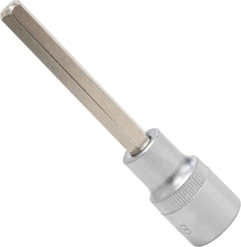 C71026 - Bussola per cacciavite esagonale lunga 1/2'' monoblocco 8mm x 100mm a 6 lati - DIN 3120 - punta per chiave a cricchetto manuale - in acciaio CR-V 6150 AISI S2 HRC 58-62