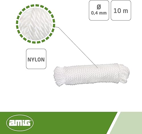 Amig - Corda Bianca in Nylon Torto Mod.20220 | Cordino multiuso Resistente e Morbido Ideale per Nautica o Pesca, Costruzione, Sport e Giochi, Fai da te e ormeggi | Misure: Ø 4 mm x 10 m