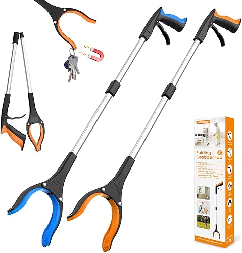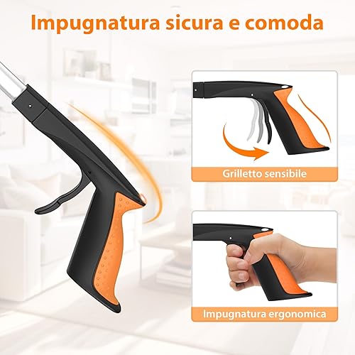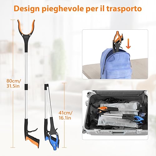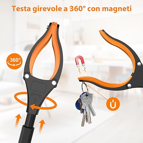 Pinza Raccogli Oggetti 80 cm Set da 2, Pinza Telescopica Prendi Oggetti Ergonomica con Artiglio Antiscivolo e Testa Girevole, Pinza Raccogli Rifiuti per Anziani