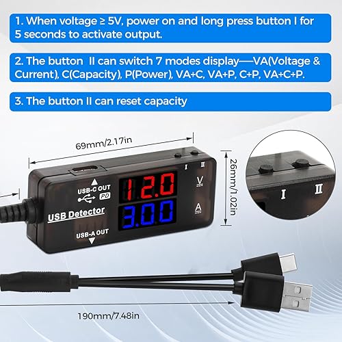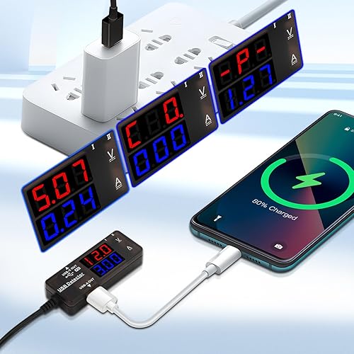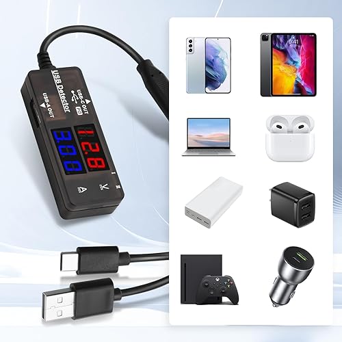 Diymore Tester USB,USB-A USB-C 2.0,Misuratore di Corrente USB,Misuratore di Potenza USB,Tester USB C Misuratore USB C Voltmetro Multimetro Misuratore di Tensione