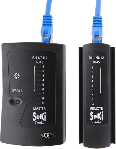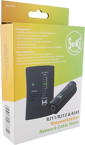 SeKi Tester di rete per RJ11 RJ12 RJ45 cavo di rete ISDN LAN, tester di condotto, tester per cavi, nero per testare e testare LAN e cavi patch