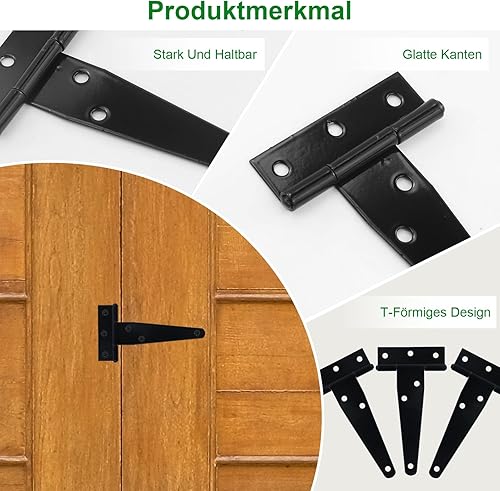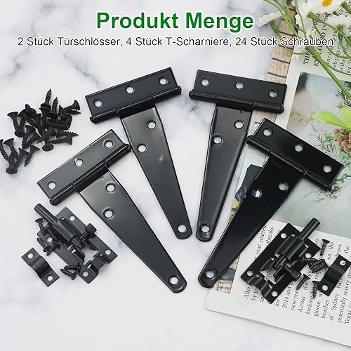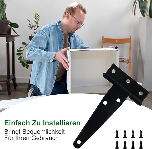 4 cerniere a T, Heavy Duty a forma di T, cerniere per porta a T con 2 maniglie e viti abbinate, cerniere a T in metallo per porte, finestre, recinzioni (nero)