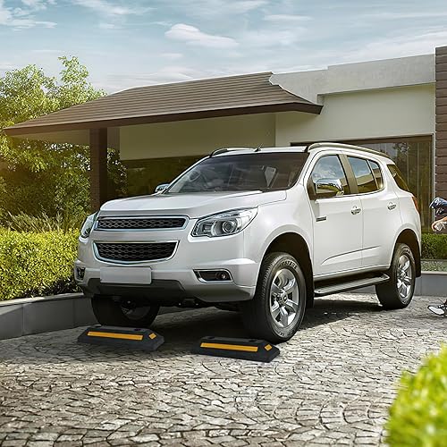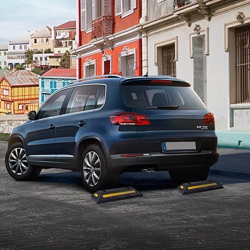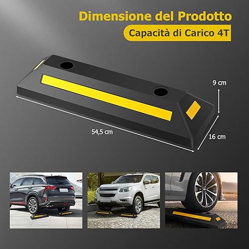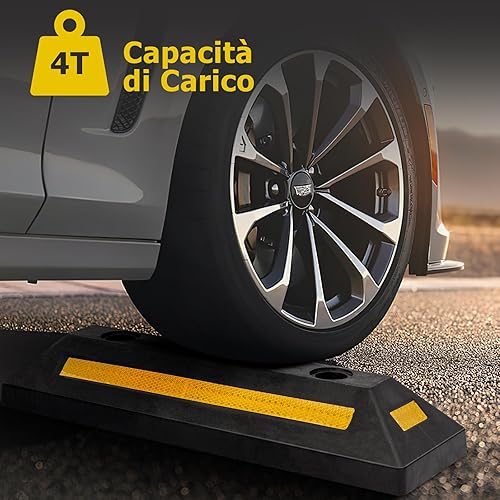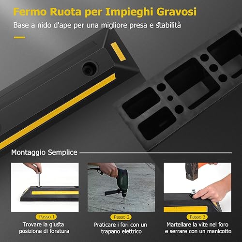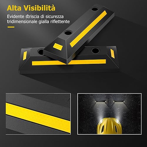 Blocco di Parcheggio per Veicoli in Garage, 2 Tappi Pesante per Pavimento con Strisce Riflettenti a 3 Vie, Base a Nido d'Ape, capacità di 4000kg, Cordolo per Parcheggio da Interno ed Esterno