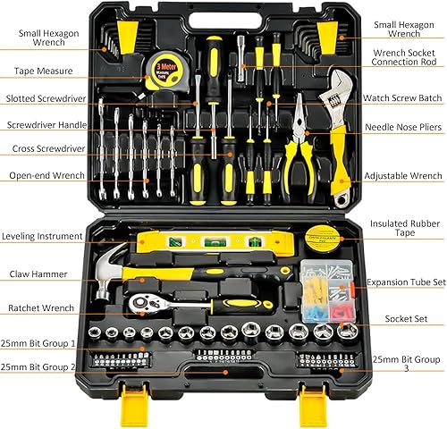 Set di attrezzi da 108 pezzi per uso domestico generale con cassetta degli attrezzi in plastica per riporre auto e casa