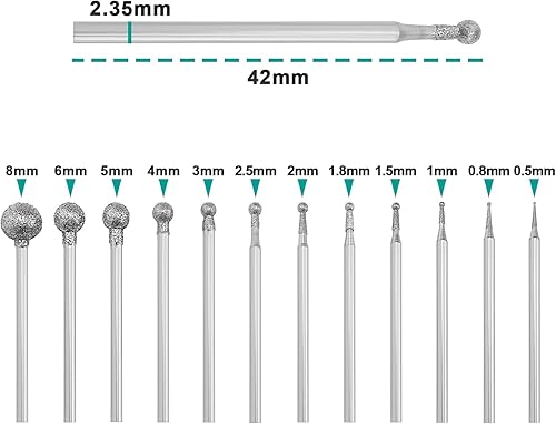 Set Di 12 Frese Diamantate A Testa Tonda Per Intaglio Della Pietra Fresa Diamantata A Testa Sferica Da 0,5~8 Mm Adatta Con Mandrino Da 3/32 Pollici Compatibile Con Utensile Rotante Argento