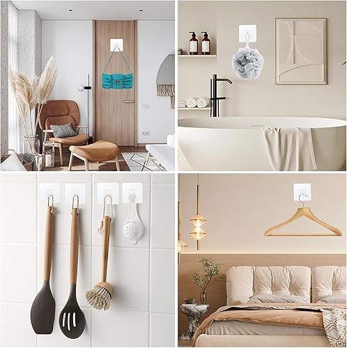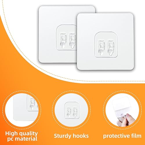 RAFIYU 20 Pezzi Ganci Adesivi di Ricambio, Ganci Adesivi Bagno per Mensola Doccia 6,7x6,7cm, Adesivo Forte per Mensole DocciaTrasparenti Senza Trapano, per Cucina Bagno Cestino (Carico Massimo 10kg)