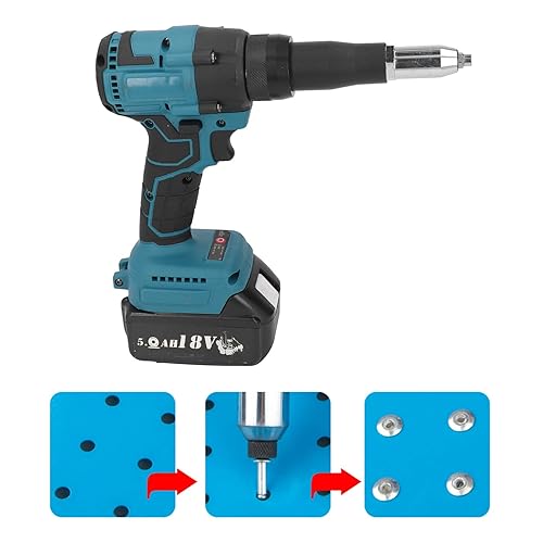 Pistola per Rivetti a Batteria 18V, Pistola per Rivetti Elettrica Senza Spazzole a LED Strumento Manuale Automatico per Rivetti a Dado per L'industria (Senza batteria)