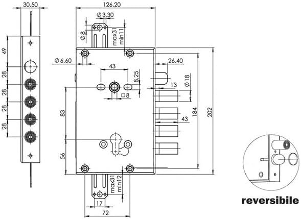 AERREGI SERRATURA BLINDATA INTERASSE 28 mm CON ENTRATA 63 mm A DOPPIA MANDATA | SERRATURA PER PORTE BLINDATE REVERSIBILE