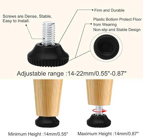 PATIKIL M10x15x30mm Livellamento Piedini Regolabili Avvitamento Livellatore, 8pz Pavimento Protezione Copertura Imbottitura per Casa Mobili Scrivania Tavolo Sedia Gamba