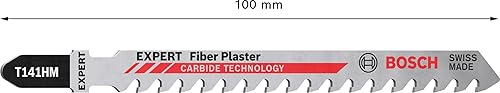 Bosch Accessories 3x Lame per seghetto alternativo Expert `Fiber Plaster` T 141 HM (per Pannelli in fibrocemento, Pannello in cartongesso, Lunghezza 100 mm, accessorio Seghetto alternativo)