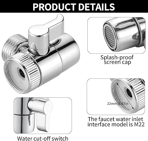 3 Vie Deviatore Doccia Rubinetto, Rubinetto Splitter per Doccia Lega di Ottone M22 a M24, Deviatore Rubinetto Pezzi di Ricambio, Raccordi Selettore Doccia Adatto per Cucina e Bagno