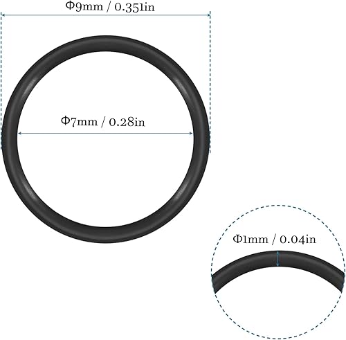 9mm x 7mm x 1mm Nitrile Gomma O-ring x 50pz Rotondo Guarnizione Rondella per Rubinetto Idraulica Riparazione Sigillatura Connessione [Nero]