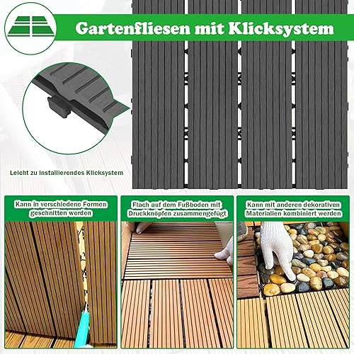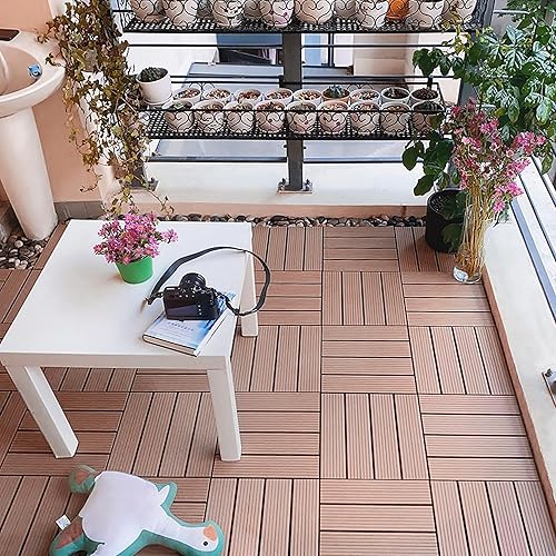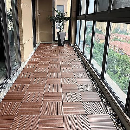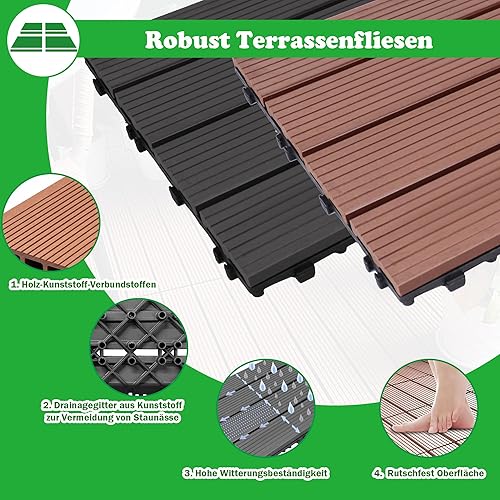 5m² WPC Piastrelle per Terrazze da Giardino 55 Pezzi Mattonelle per Patio 30x30cm Piastrella con Incastro Sistema e Drenaggio Griglia Pavimentazione per Esterni Laghetti (Type A, Marron)